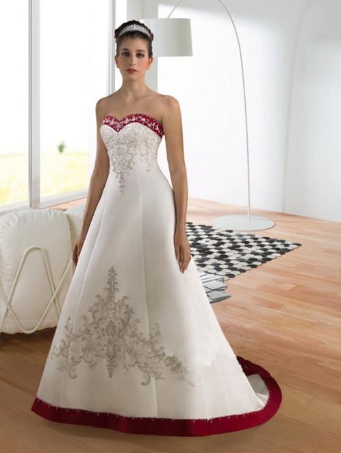 » White Wedding Dress With Red Trim : Gorgeous Red and White Lace Organza Wedding Dress ... / Perfecct c352 plus size wedding dress burgundy red color trim.